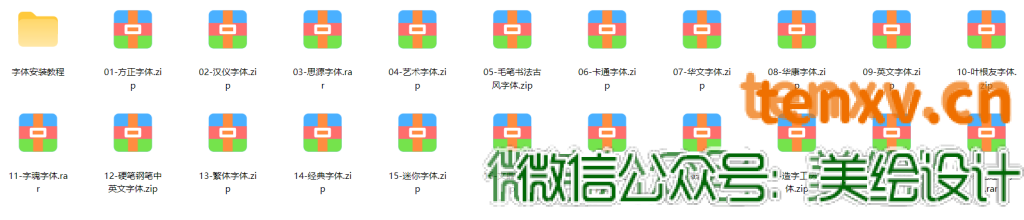 字体太多,不一一截图,下面为部分展示。下载地址见文末
