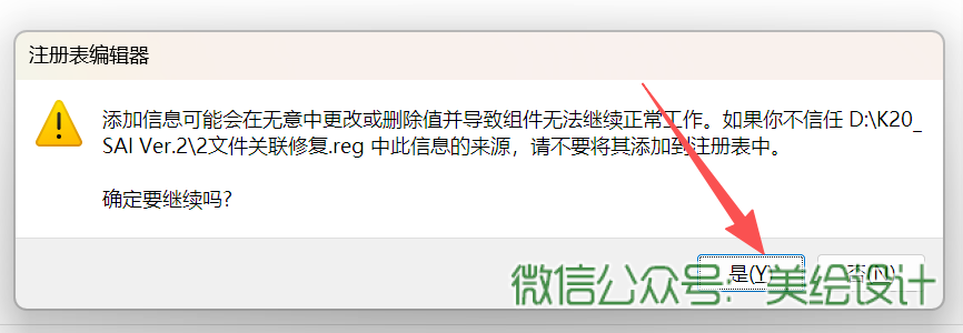 B.双击解压后的文件夹中的“2文件关联修复”弹出的窗口点击“是”;
