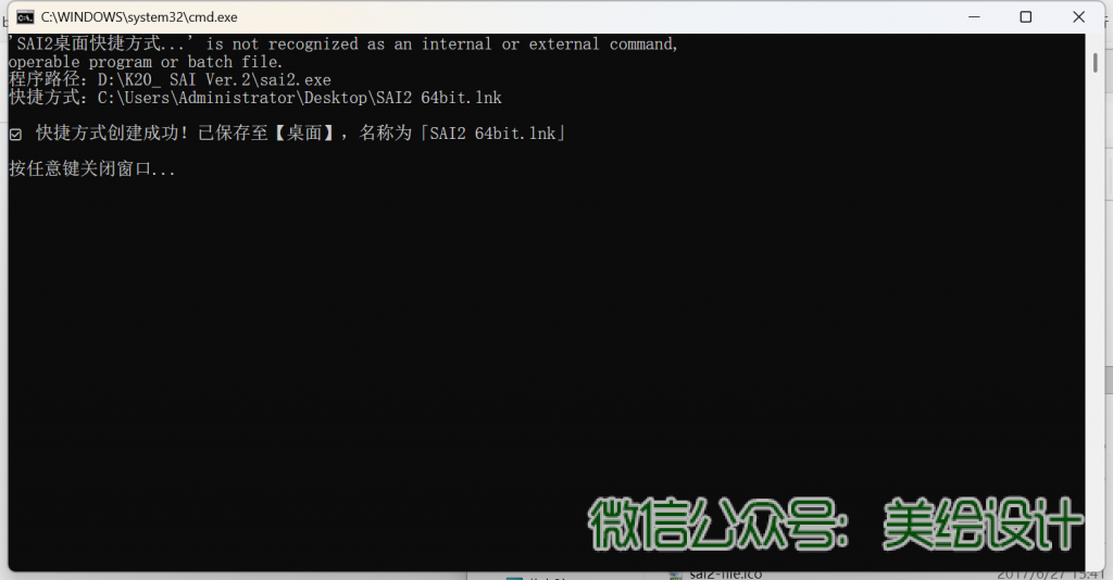 C.双击解压后的文件夹中的”3绿化SAI2创建快捷方式”;完毕后到桌面启动SAI2 64bit软件就可以用了!直到提示关闭窗口,就可以了,直接关闭。